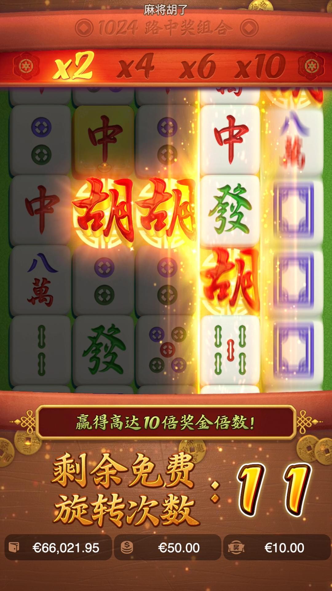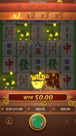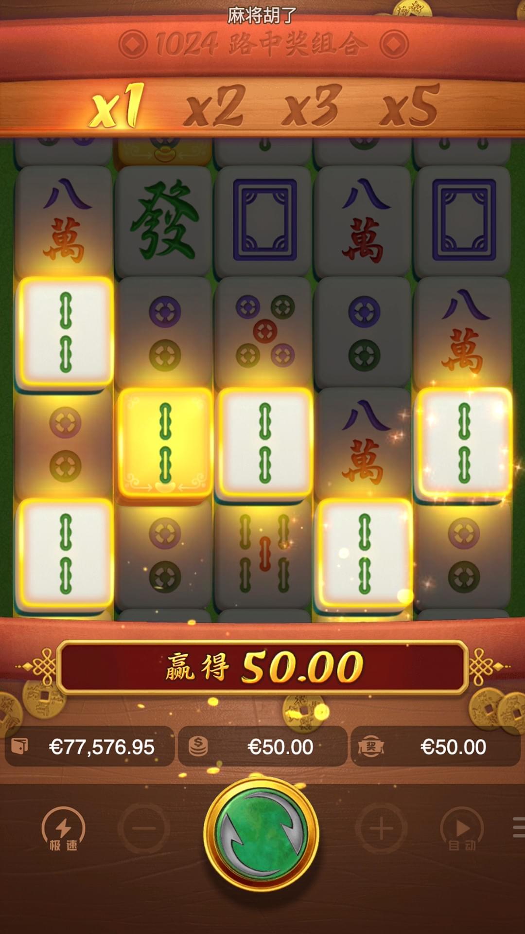 在新符号跌落后的每一轮旋转中,上一轮赢奖中所涉及的金色麻将符号将被转换为百搭符号。